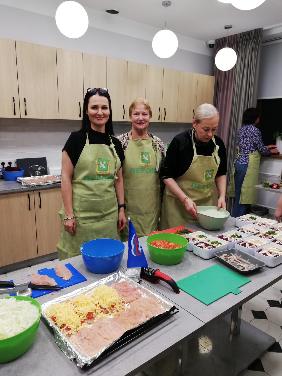 Вчера в кулинарной студии Центра Московского долголетия и молодости на улице Перовской прошел интересный и полезный мастер-класс для жителей района. С гостями Центра своими поварскими секретами и кулинарными знаниями поделилась депутат Государственной Думы Татьяна Буцкая. С ней и нашими жителями вместе трудились исполнительный секретарь местного отделения партии Единая Россия ВАО Елена Хаустова, депутат Совета депутатов МО Перово Анна Гурченкова, заместители главы управы района Перово Елена Гусаркина, Надежда Облогина и другие активисты Перово. Их кулинарное мастерство предназначено раненым бойцам из военного госпиталя им. П.В. Мандрыка, куда будут отвезены блюда, приготовленные заботливыми руками женщин. Среди них была председатель совета ветеранов педагогического труда нашей школы Галина Николаевна Домнина.