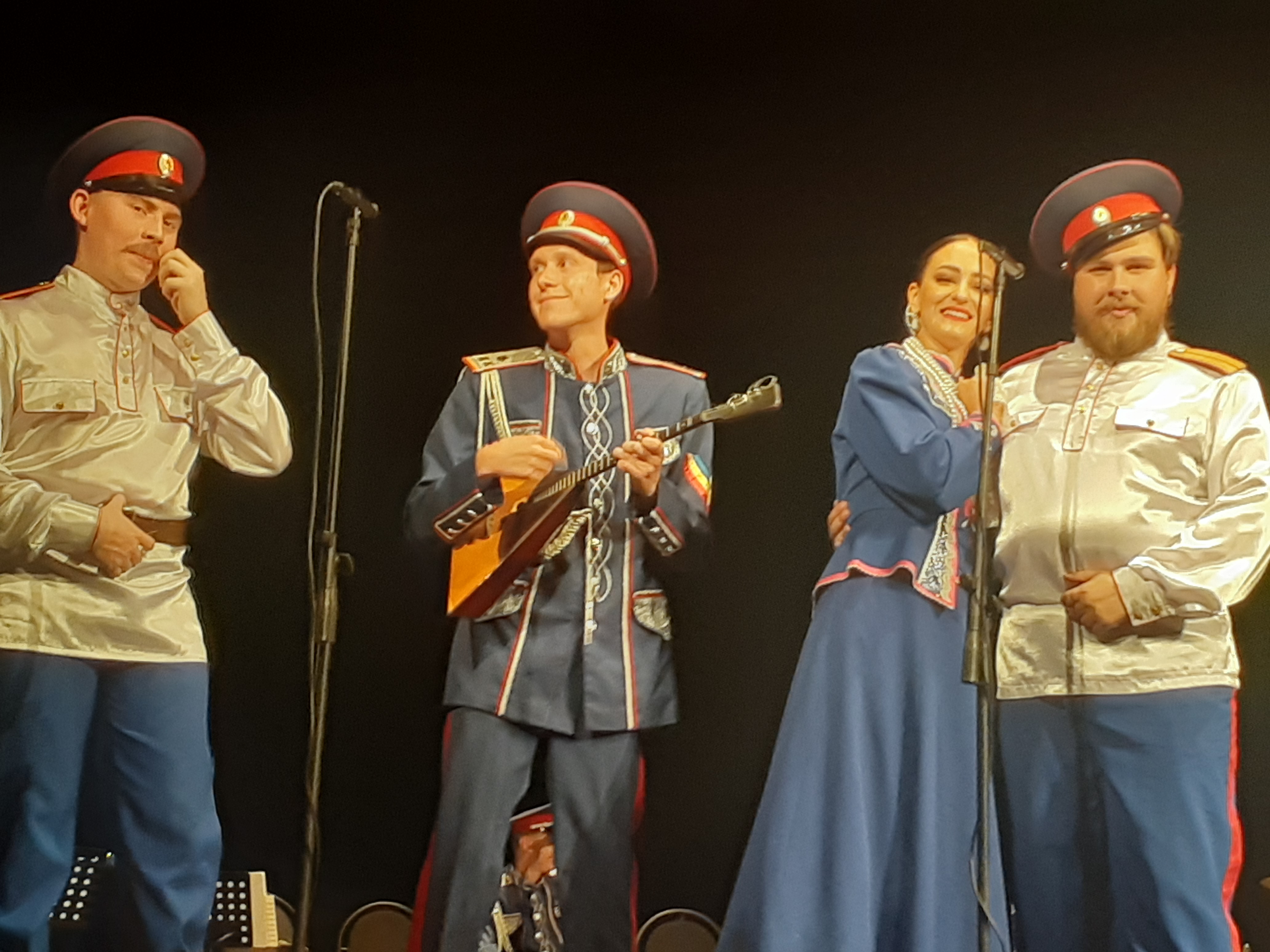Концерт этого коллектива во Дворце на Яузе для ветеранов педагогического труда Москвы – это великолепный праздник в лучших традициях казачества, участниками которого стали все собравшиеся в этот день в зале! Он познакомил с культурными традициями российских казаков, являющимися важной частью богатейшего искусства России. В репертуаре ансамбля - песни и танцы Донских, Терских, Кубанских, Некрасовских казаков, танцевальные, хоровые, инструментальные произведения. Ансамбль состоит из балетной, хоровой и оркестровой групп. Каждая группа в отдельности обладает своим репертуаром, но целом – это уникальное сценическое представление, которое не оставляет равнодушным ни одного зрителя. Ансамбль стремится к тому, чтобы исполняемые им народные песни звучали не только как прекрасные памятники старины, но и как жизненное искусство сегодняшнего дня. Прекрасное настроение, жизнеутверждающие чувства, прилив энергии, сил, вызвал этот концерт у зрителей. Огромная благодарность его устроителям – кто в течение года заботится о прекрасных концертных программах для взыскательных слушателей – ветеранов педагогического труда!