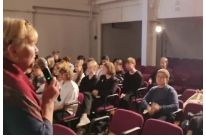 Просмотр фильма провели куратор проекта в школе Валентина Андреевна Кац и киновед, сценарист и режиссер Иван Владимирович Фадеев. Интересна история создания фильма, его актерский состав, и конечно, содержание, смыслы. Актуальные и в наше время вопросы о воспитании, сохранении Человека в человеке.